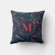 Beautiful pillow with your monogram and an elegant stylish hand drawn berry illustration in vibrant red and pastel grey on a navy blue background. If you would like a design in different colours or on matching products, please contact us at aquipoppy@icloud.com