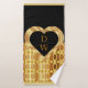 Stylish Monogrammed Gold And Black Heart Geometric Bath Towel Set