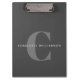 Stylish Monogrammed Name Professional Black Grey Clipboard