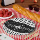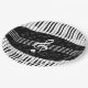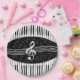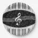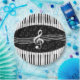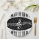 Stylish musical note clef and piano keys design in black white and grey with dark grey musical notes on black in the background. great gift for any music lover or budding musician