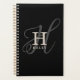 Stylish and beautiful, this monogram design displays the initial of your first name in both a simple serif font and an elegant calligraphy font in the background. Your name is displayed below your monogram initial in this unique typography custom design. The three elements blend together with a sophisticated harmony and create your own personal branding logo that is stylish and feminine. Shown here with a chic black background with monogram elements in neutral beige and grey.