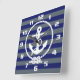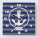 Stylish Nautical Anchor and Blue Stripe Pattern Square Wall Clock