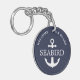 Stylish Nautical Anchor Navy Blue Custom Boat Name Key Ring