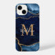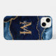 Stylish Navy Blue Agate Geode Gold Script Monogram iPhone Case