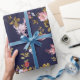 Stylish navy blue pink gold boho floral wrapping paper