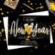 Stylish New Year Champagne Gold Confetti Black Invitation