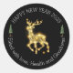 Elegant New Year's greeting sticker with black colour and a luminous llama drawing expressing the New Year