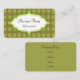 Olive green argyle decorates this stylish business card. Customise the information on this business card to suit your needs. Use this business card for real estate, auctions, autos, a bed and breakfast, bakery, lawn care, landscaping, interior design, a barber, catering, etc....The design is from original art.