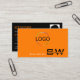 Stylish Orange Black with Monogram Logo and Photo Business Card