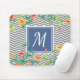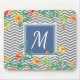 Stylish Orange Floral Chevron Chic Blue Monogram Mouse Mat