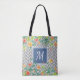 Stylish Orange Floral Chevron Chic Blue Monogram Tote Bag
