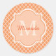 Stylish Orange Quatrefoil Monogram With Name Classic Round Sticker