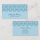 This blue business card features a unique outline geometric pattern. It's ideal for wedding planners, writers, consultants, interior designers, photographers, etc or just about anyone who wants a stylish feminine design.