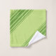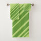 Stylish, modern bathroom towel set with palm leaf green and yellow green diagonal stripes.