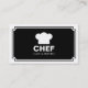 A stylish business card template designed for a cafe, restaurant or coffee shop in mind. The card has a large framed panel on the front containing a generic chef's hat logo/symbol with the company name and type of business beneath. The reverse side of the card has a strait ribbon style header with the company name and business type repeated in the header. The lower section has the address at the top with opening times in the centre, with telephone number beneath and the email and website addresses at the bottom. This template allows plenty of space for longer names making it easy to customise with your details, but can also be additionally customised.