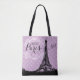 Stylish Paris Eiffel Tower Pastel Purple Monogram Tote Bag
