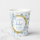 Celebrate your baby boy in style with these personalised paper cups, designed with soft boho watercolor dusty blue and pastel blue flowers accented in elegant gold. Perfect for boy baby showers, these charming cups add a stylish and coordinated touch to your tables, drink stations, and dessert areas.