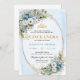 Ideal for classic, modern, garden, or elegant Quinceañera themes, this invitation combines delicate blue hues with warm gold details to achieve a look that feels both sophisticated and youthful. The greenery and eucalyptus bring freshness and balance, while the gold accents add just the right amount of sparkle for a meaningful 15th birthday celebration. Whether you are planning a formal Quinceañera, a traditional fiesta, or an intimate family gathering, this invitation sets a beautiful and memorable tone.