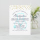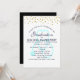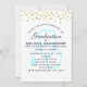A invitation for a nursing graduation celebration. Designed with faux gold confetti dots along the top. A pastel blue stethoscope behind the party text.