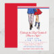 Celebrate Independence Day in fashionable style with this festive Fourth of July party invitation featuring a stylish couple dressed in patriotic red, white, and blue attire. The illustration showcases a woman in a chic red dress with blue heels and a gentleman in a blue blazer, white pants with American flags, and brown shoes—capturing the fun and fashionable spirit of a summer celebration.