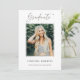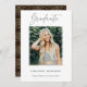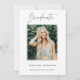 Stylish graduation announcement card featuring the graduate's photo with "Graduate" in modern script. Personalise the photo by adding the graduate's name, school name, and graduation year. The reverse side features an abstract golden circle pattern on a brown background. The reverse side background colour can be customised.