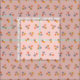 Pink, peach, blue flowers on pink-peach background, seamless repeat pattern