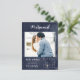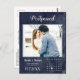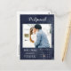 Simple elegant & stylish navy blue photo wedding postponed / changed date postcard template features a clean, modern design with calligraphy / unique brush script style text. Click customise further to move the heart. Cute couple photo with same time, same place new date card. Pls contact us for any help in customisation.