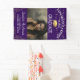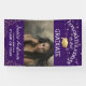 A stylish 'Congratulations to our Graduate' door banner, featuring a photo of the student, on a purple background that can be changed to any colour, string twinkle lights, gold glitter corners, a gold graduation cap and text that can easily be customised.