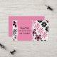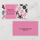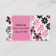 Pretty mummy networking card done in pink and black flowers, against a white background. Graphics of a decorative pink text area, has black text ready to personalise. A solid pink back and black text, add more text if you want. Great looking mummy card, that's great for arranging play dates, with other moms, and baby sitting co-ops.