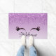 A door mat with a trendy stylish design. The background is a purple gradient colour with an image of fake sparkling glitter dripping down from the top. A pair of girly cute eyelashes underneath the glitter image.