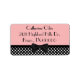 Stylish address labels, with solid pink, on the top, and black with white polka dots, on the bottom. Graphics of a black line bordering the background with a black bow decorates the middle. Black text is ready to personalise for yourself or your business needs.