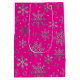Stylish Pink Christmas w/ Elegant Snowflakes Medium Gift Bag