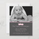 Stylish custom photo baby birth announcement done in charcoal grey, with a pink edge, at the top, and a cute pink cartoon crown. Add your baby's photo to the top of the announcement and personalise the pink text, with your baby's birth information. Sweet and stylish way to announce the arrival of your baby girl, to friends and family.