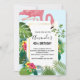 Stylish Pink Flamingo and Tropical Leaves Birthday Invitation