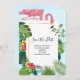 Stylish Pink Flamingo and Tropical Leaves Wedding Save The Date