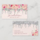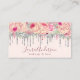 Stylish pink floral glitter drips makeup & hair business card