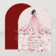 This invitation stands out for its sophisticated watercolor effect, bringing an artistic, soft, and ethereal feel to the design. The illustration features a full-body woman in a graceful model pose, with dark hair and a delicate, refined presence. She wears a pink tulle dress adorned with flowers that appear to scatter softly in shades of pink, red, and white, accompanied by green leaves that add freshness and balance. The front background is white, allowing every brushstroke to be seen clearly, while the back of the invitation is red, adding warmth and contrast that elegantly complements the illustration without interfering with its artistic details. Every element conveys charm, femininity, and a romantic aura, making this invitation both exquisite and visually captivating.