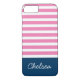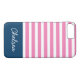 Stylish Pink Stripes Blue Name Case-Mate iPhone Case