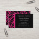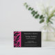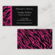 Modern and stylish zebra stripes business cards features pink zebra stripes on the front and back and a pink accent border on the front. Stand out with these unique business cards. Perfect for variety of business types and professions. Available in a variety of colours and card stocks. Customise with your personal or business information. Click the "Customise it!" button to change the font style, text size, text colour and more!