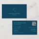 Stylish Plain Ocean Blue with Monogram and QR Code Business Card