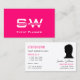 Stylish Plain Pink White with Monogram and Photo Business Card