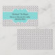 Stylish mummy playdate card done in a taupe and white polka dot pattern. Graphics of a decorative aquamarine band, across the middle, with dark grey custom text. Personalise the text for a great mummy networking play date card.