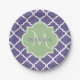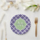 Stylish Purple Quatrefoil and Name Green Monogram Paper Plate