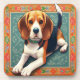 Stylish Realistic 3D Beagle Dog Colourful Border Coaster