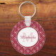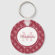 Stylish Red and White Hearts Monogram With Name Key Ring