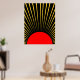 A stylish design with a vivid red sun with rays of yellow sunshine on a black background. Whether you're looking for a gift for a friend or just want something new for yourself, this is the perfect choice.
