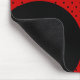 Decorate your desk at work or home with this stylish mouse pad done in a red with tiny black polka dot pattern. A large round black circle, in the bottom left corner of the mat has a large red one letter monogram. Personalise the letter for yourself or as a great gift idea.