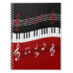 Stylish Red Black White Piano Keys and Notes Notebook