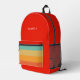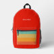 A stylish red & colourful retro stripes backpack is stylish. It's perfect for back to school.