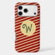 Stylish Red gold stripes pattern custom monogram